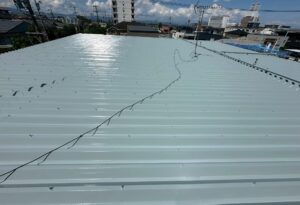 大垣市の屋根塗装 青空に映えるグレーの屋根