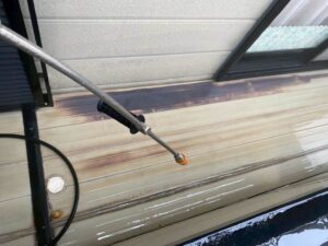 外壁や屋根の汚れやコケ、古い塗膜を水圧で洗い流す作業です。