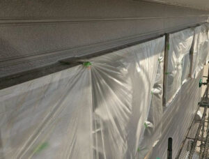塗装工事では、塗装の範囲に応じて、建物の色々な部分を養生します。