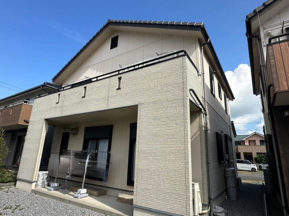 大垣市の外壁塗装 グレーツートーンの家 (2025.05.11 更新) 施工後After 施工前Before 施工データ 施工住所 大垣市 施工内容 外壁塗装防水工事 施工内容詳細 外壁塗装工事 工事を行ったきっかけ 使用塗料 アステックペイント KFケミカル 関西ペイント この施工事例と類似の条件で見積を依頼する 施工写真ギャラリー シーリング撤去古い目地は取り除きます シーリング充填外壁色と類似色で施工します ベランダ防水ケレン・脱脂・トップコート 高圧洗浄専用の機械を使って汚れやコケを除去します 外壁塗装下地処理をしたのち丁寧に塗っていきます 付帯部塗装付帯部にもしっかりと塗装します