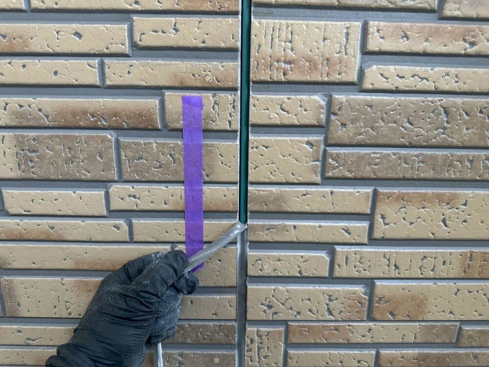 古い目地のシーリングは取り除きま、外壁と近い色で打ち替えします。