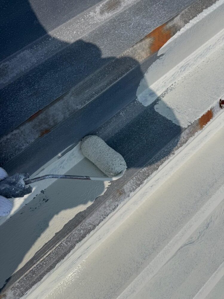 不破郡垂井町の屋根塗装 光をまとった金属屋根