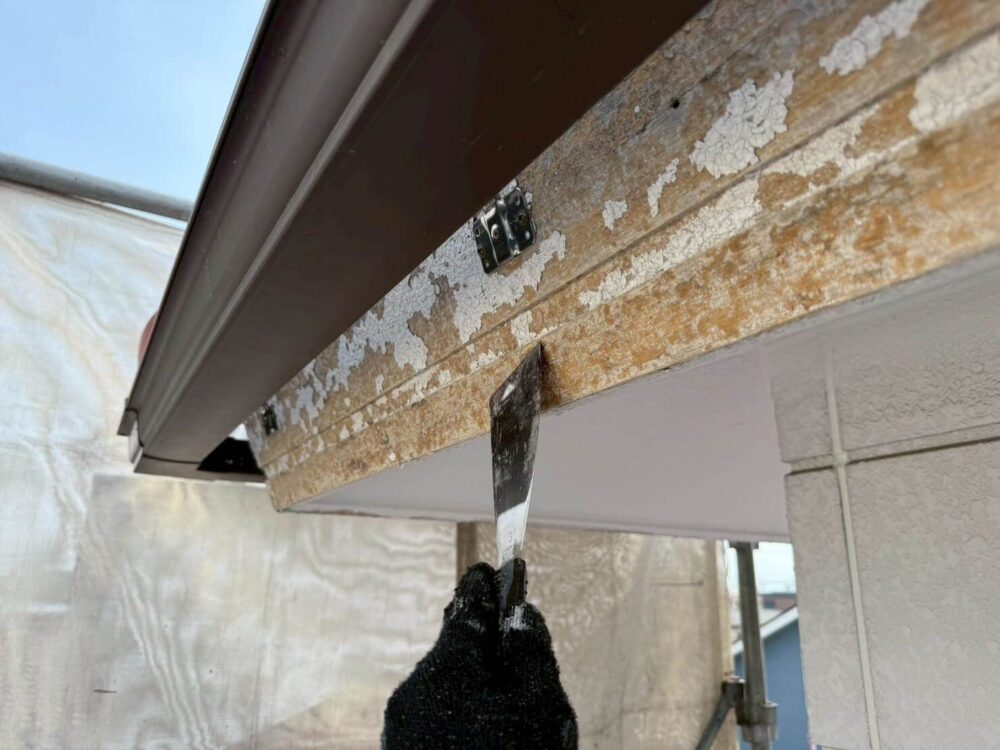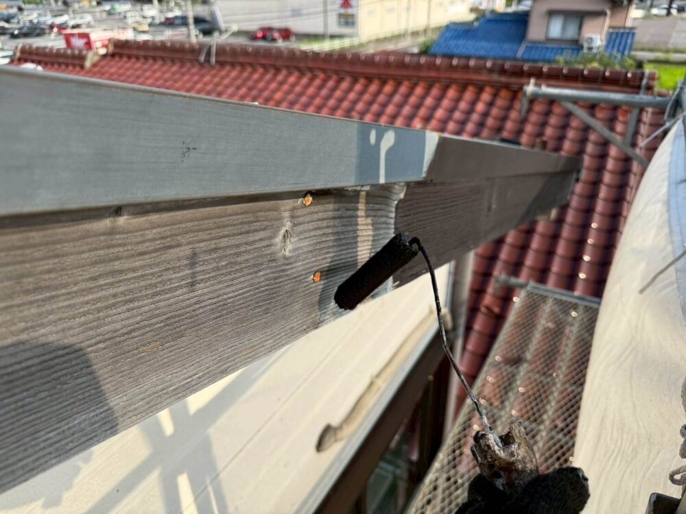 破風板などの付帯部にも下塗り・中塗り・上塗りをします。