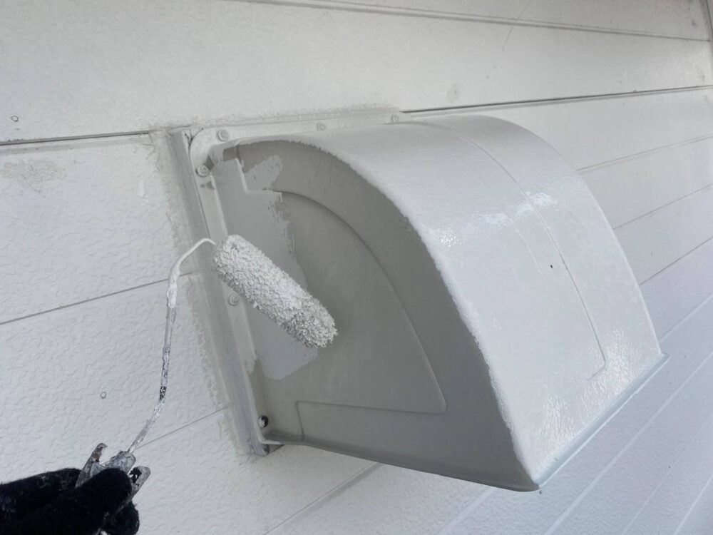 換気フードにも外壁と同色で塗ります。