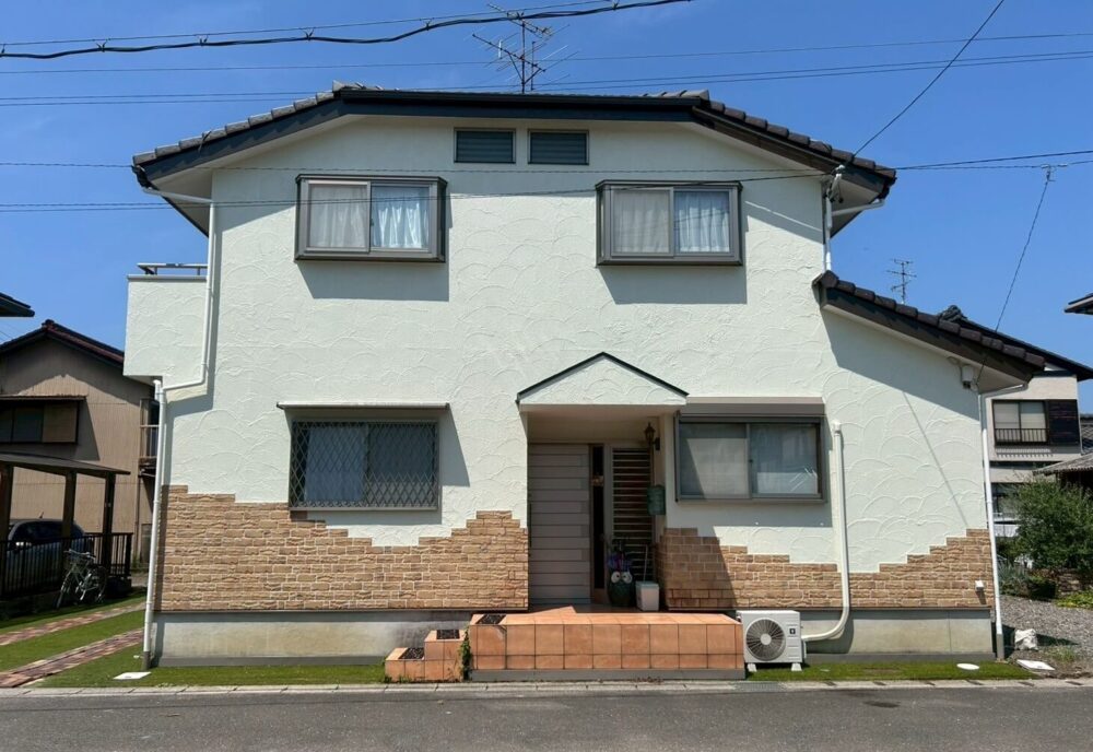 瑞穂市の外壁塗装 白壁とレンガが織りなす品のある佇まい