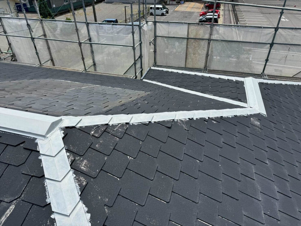 下塗り後、棟板金にもしっかりと塗装します。