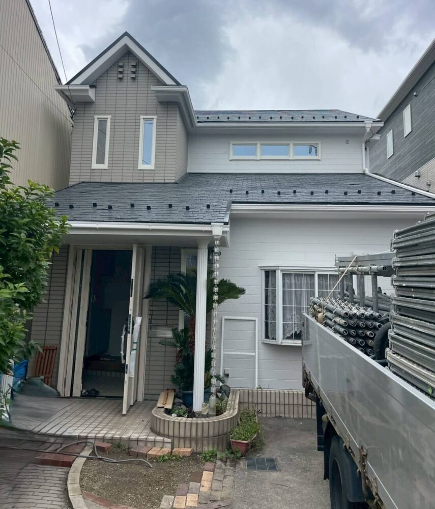 大垣市の外壁塗装・屋根塗装 優しいグレーの外壁美 (2025.11.16 更新) 施工後After 施工前Before 施工データ 施工住所 大垣市 施工内容 外壁塗装屋根塗装 施工内容詳細 外壁塗装工事・屋根塗装工事 工事を行ったきっかけ 使用塗料 アステックペイント KFケミカル 関西ペイント この施工事例と類似の条件で見積を依頼する 施工写真ギャラリー シーリング打ち替え古い目地を取り除き、外壁色と同色で仕上げます。 屋根補修塗装前に屋根補修などの下処理をしっかりと行います。 屋根塗装下塗りを丁寧に行い、塗りを仕上げていきます。 高圧洗浄軒天もしっかりと汚れを落とします。 付帯部塗装破風板などの付帯部にもしっかり塗ります。 外壁塗装下塗り・中塗り・上塗りの3回塗装をしていきます。