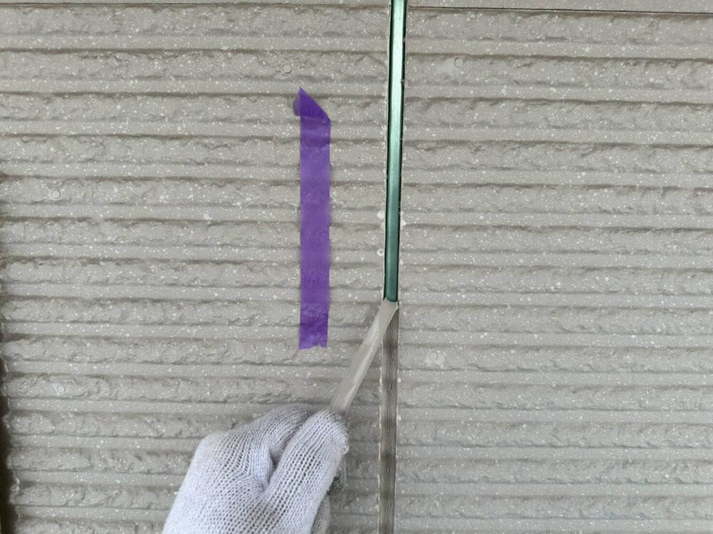 目地打ち替えのため既存シーリングを撤去しています。