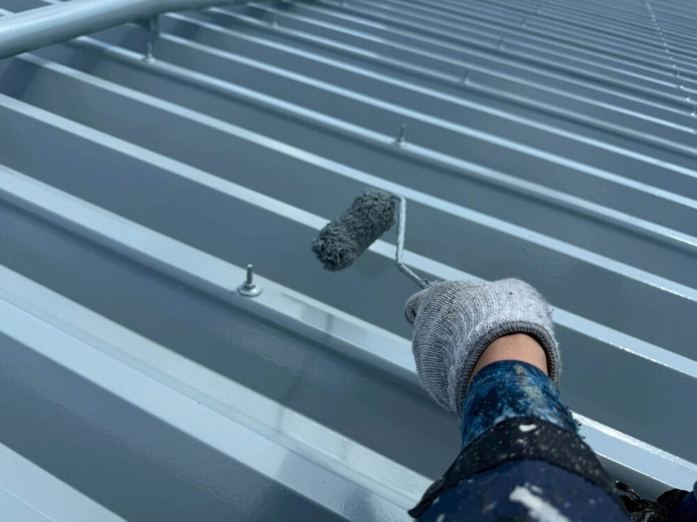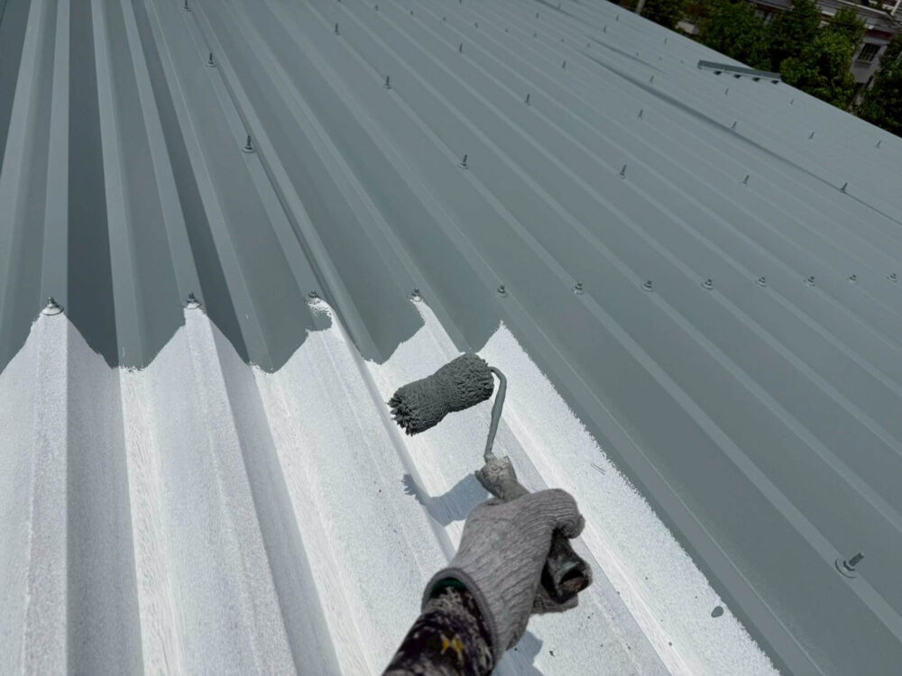大垣市の屋根塗装 青空に映えるグレーの屋根